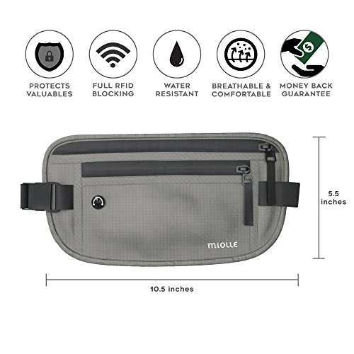 -. Feature : PROTECTS YOUR VALUABLES when you're traveling or in areas filled with people. Pickpockets can NOT get to your money, documents, and valuables when they are secured in this premium travel money belt attached around your waist. Also prevents accidental losses thanks to the quality zippers on this waist money belt for travel. / FULL RFID BLOCKING protection keeps thieves from using electronics to steal your credit cards and other information. It only takes a second for thieves to read your magnetic strips. This smart Secure Money Belt Waist Bag blocks them, giving you confidence everywhere you go. Also you can wear it under your clothes like Hidden Wallet Money Belt. / SPECIAL EAR PHONE HOLE makes this great for tucking your phone or other device inside. Keeps your expensive iPhone or Android safe. Yet you can listen to music and other programming with an earphone. Extend the wire through the special ear phone hole included in this waist bag. / ADJUSTABLE BELT IS 4 in LONGER THAN OTHERS AND BAG THICKNESS IS 0.5 INCH OR 1.0 INCH giving you more comfort. Choose from 2 sizes of Money Belt Passport wallet: the more compact 0.5 inch OR roomier 1.0 inch thickness that holds a LOT of stuff. It's fully waterproof money belt to protect your valuables even when you are walking in the rain. / 100% MONEY BACK GUARANTEE ensures this will quickly become your favorite no-risk purchase. Many people are stocking up with 2 or 3 so every member of the family can have their own. HURRY AND BUY NOW while we have this RFID money belts in stock. It makes a great gift for friends, family, and co-workers.