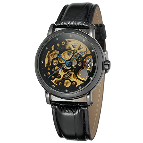 -. Title : BesTn 腕時計 男女 自動巻き スケルトン アンティーク風 革バンド H098 格好良い ブラック
