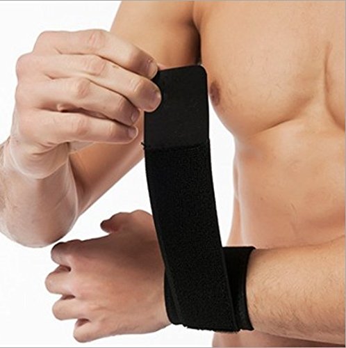 -. Feature : Material: rubber 45%, Lycra 50%, Velcro 5% / Product Description: The product middle layer is made of rubber, increased ventilation, comfortable to wear, with adjustable stability, designed for stiff, weak or injured wrist to provide protection. The elastic band is easy to adjust and use. / Scope: tennis, badminton, basketball, volleyball, in the movement to protect the wrist / Note: Please use neutral detergent when cleaning, do not sun and hot baking, not chlorine bleach, not ironing, hanging dry