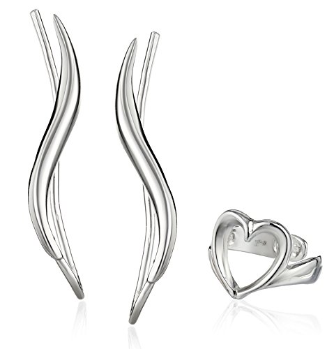 The Ear Pin Sterling Silver Polished Earrings Paired with Heart Earcuff Earrings
