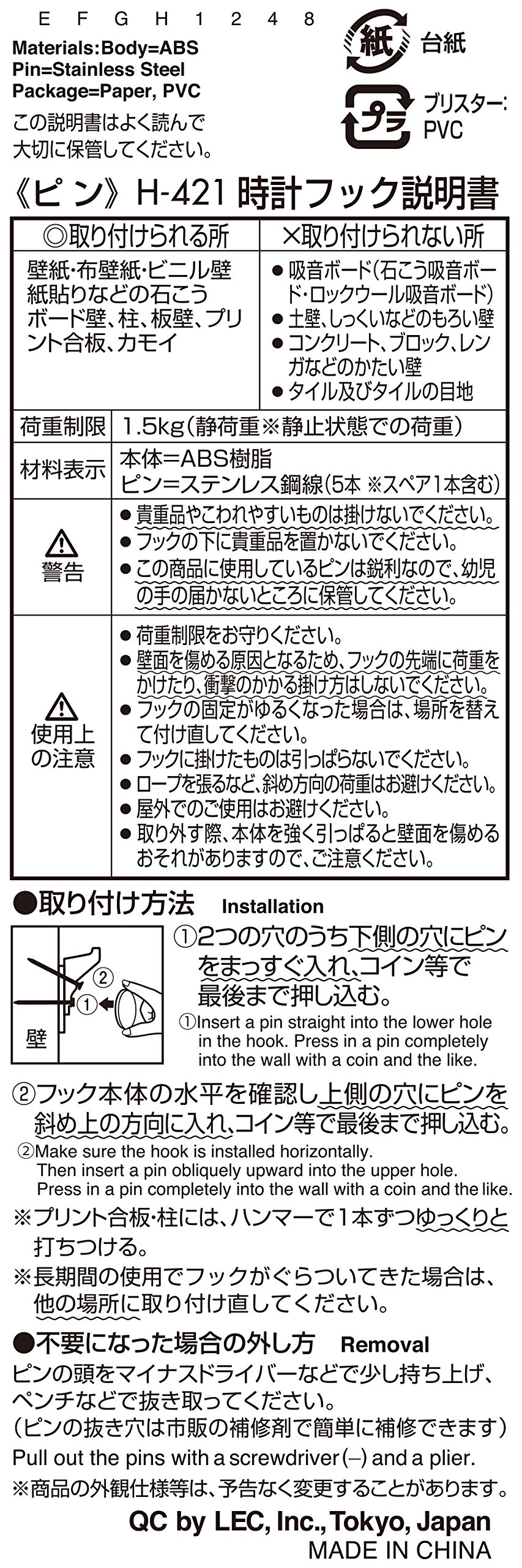 ● The hook can be hidden by the clock.