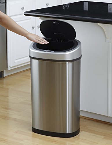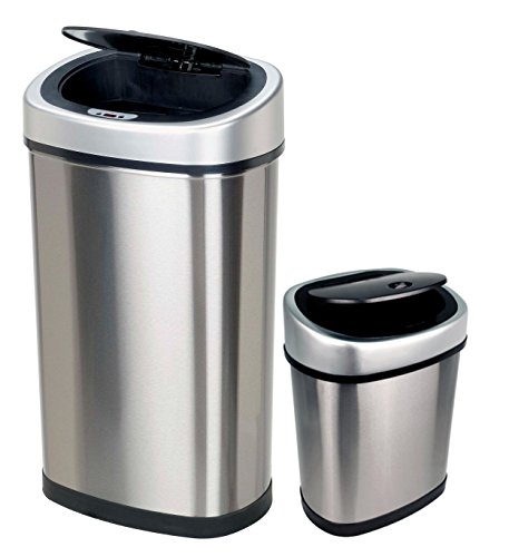 NINE STARS CB-DZT-50-9/12-9 STAINLESS STEEL 2-IN-1 INFRARED TOUCHLESS AUTOMATIC MOTION SENSOR LID OPEN TRASH CANS COMBO, 13.2/3.2 GALLON