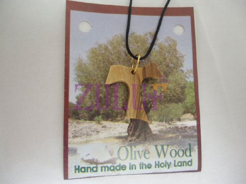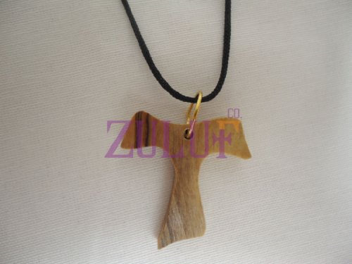 Saint St. Francis Franciscan Tau / Tao Cross Jesus Olive Wood Necklace (OW-PEN-010)
