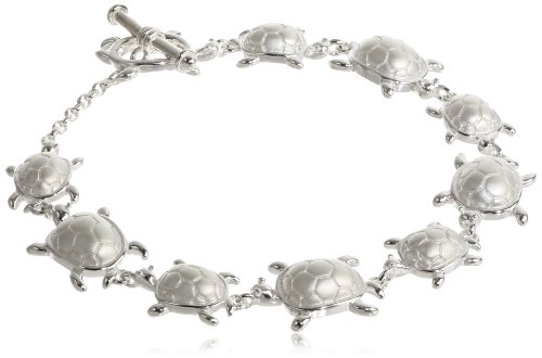-. Feature : Add a touch of whimsical flair to an ensemble with this bracelet, whose brushed sterling silver construction is studded with cute turtle stations. / Rolo chain with toggle clasp / Crafted in .925 sterling silver / Imported