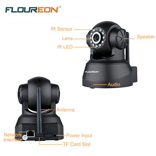 FLOUREON 720P Wireless WIFI Security Camera IP Cam Baby Monitor H.264 Pan/Tilt P2P Support Onvif for Home/ Baby Care/Office/Apartment/Supermarket (Black)