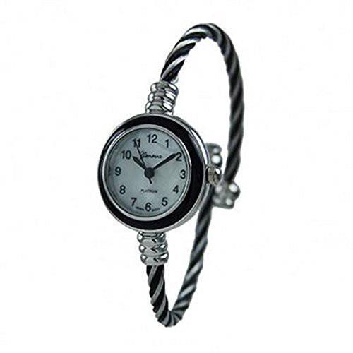 -. Title : Black & Silver Wire Cable Watch Geneva Platinum