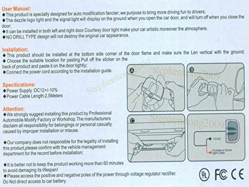 Package Include : 2 X 2014 latest 6th Gen LED car door logo laser lights for Chevrolet All Models all Year