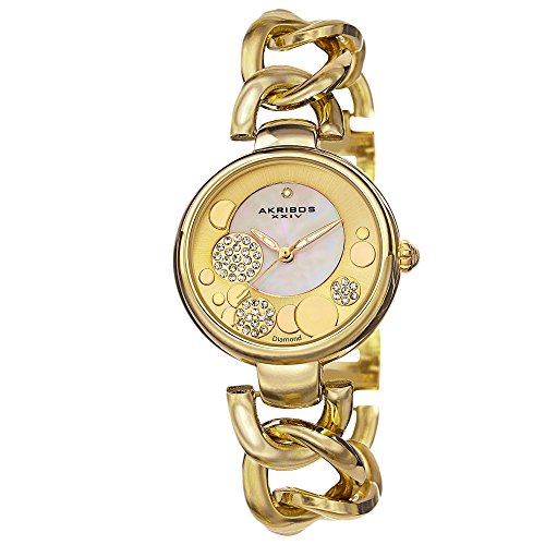 -. Binding : Watch -. Brand : Akribos XXIV -. Color : gold -. Department : Womens -. EAN : 0755464344596 -. Feature : This dazzling watch set for women is the complete package. The set includes genuine diamond markers, crystal accents, mother of pearl dials and fashion forward timepieces that will guarantee complements. / Each beautiful watch is equally durable and held together with a stainless steel caseback. Setting the time on these watches is quick and easy using the push-pull crowns. / Give this wonderful women's watch set as a gift and you are sure to receive accolades for your thoughtfulness, as this watch set for women offers three different options to match a timepiece to various attire. / Bracelet measurements: 16 mm wide x 8.5 inches long; 18 mm wide x 7.5 inches long / Elegance for affordable P.R.Ice makes it an excellent and unique watch set for women. -. Label : Akribos XXIV -. Manufacturer : Akribos XXIV -. MPN : AKR766YGST -. PackageQuantity : 3 -. PartNumber : AKR766YGST -. ProductGroup : Watch -. ProductTypeName : WATCH -. Publisher : Akribos XXIV -. Size : standard -. Studio : Akribos XXIV -. Title : Watch Set for Women Bracelet Gold Gift Jewelry Box Fashion -. UPC : 755464344596