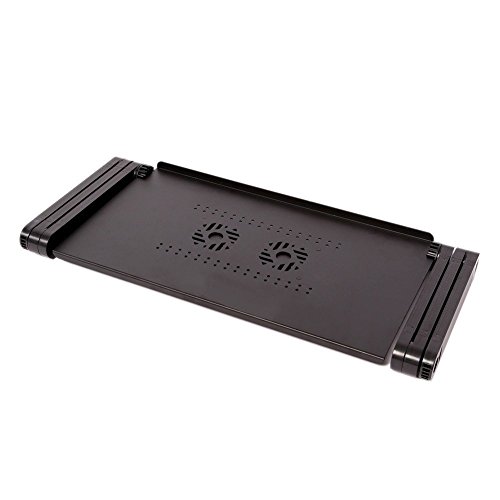 - Feature : LIGHT WEIGHT, HIGH STRENGTH ALUMINUM TRAY, STURDY LEGS - Makes Carrying Easy and Holds Your Computer Firm and Steady. / FULLY ADJUSTABLE LEGS - Rotate 360 Degrees and Lock in Place at Various Angles. Quickly Collapse The Stand to Make it Portable. / MULTIPLE USES - Table Can Also Be Used For a TV Dinner Tray, Sound Equipment, Projector, Standing Desk, Book Tray, Writing Desk, and Tablet Holder. / SILENT USB POWERED CPU COOLING FANS - Connect USB Cord (Included) to Your Computer to Power The Quiet Cooling Fans. / "BEST OF ALL" We at WETNO believe in this product and we know YOU will too. After you try it out, if you don't love it, we'll give you a full refund with NO QUESTIONS ASKED. So order yours today!