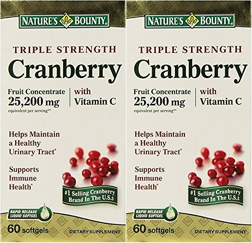 Natures Bounty Triple Strength Cranberry 25,200mg with Vitamin C, 120 Softgels (2 X 60 Count Bottles)