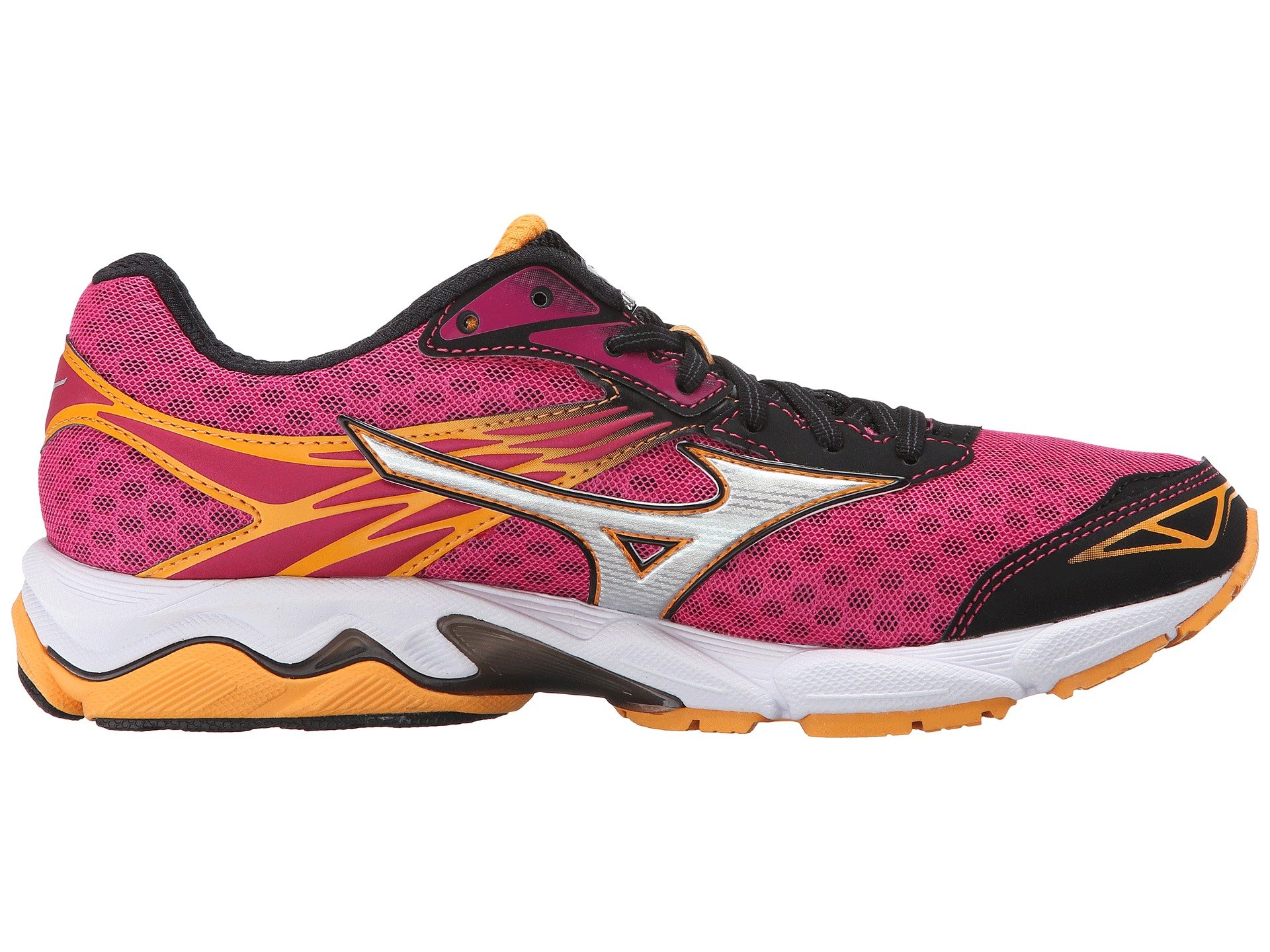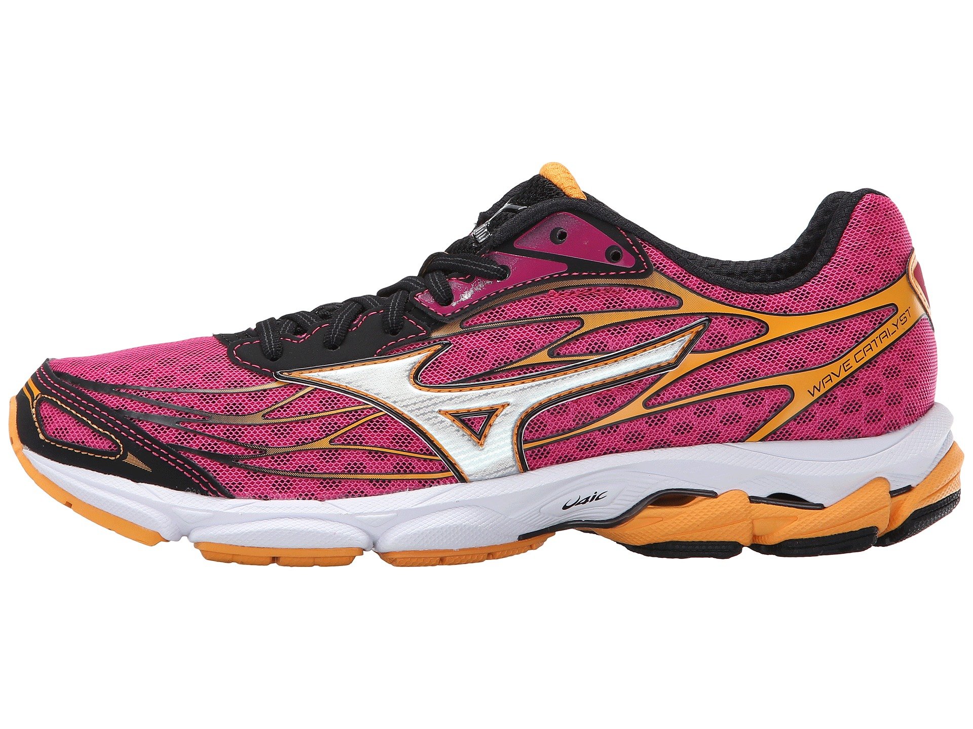 | Product Information SKU: #8963123Find just the right balance of support and endless comfort when you hit the pavement in the Mizuno? Wave Catalyst running shoe.Predecessor: None.Support Type: Overpronation/Stability.Cushioning: Lightweight, flexible response. Surface: Road. Differential: 10 mm.Awarded 'Best Debut' by Runner's World, March 2016. Runner's World is a registered trademark of Rodale, Inc. All rights reserved.Ideal for heel and mid-foot striking runners.Breathable air mesh upper with lightweight synthetic overlays. DynaMotion Fit eliminates bunching, pulling, and sliding by moving seamlessly with the foot. Lace-up closure. Plush tongue and collar. Breathable fabric lining. Removable foam insole. U4ic midsole delivers durable shock attenuation and a superior ride at 30% less weight than standard AP+ midsole material.Pebax™ Fan Wave promotes smoother landing and heel strike transitions.SmoothRide™ Engineering promotes smooth, rocking-chair-like motion with each stride. Performance Support experience provides just the right amount of support that doesn't compromise performance. Sculpted lateral forefoot supplies a more stable platform. Blown rubber forefoot. X10™ carbon rubber in high-wear areas of the outsole for long-lasting wear. Imported. Product measurements were taken using size 7.5, width B - Medium. Please note that measurements may vary by size.Weight of footwear is based on a single item, not a pair.Measurements: Weight: 8 oz |