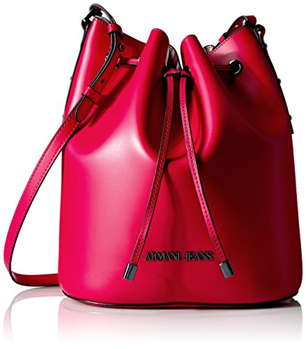 Trendy bucket bag silhouette with a contrast tie. Logo detail in the bottom front.