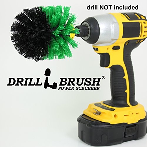 -. Feature : The new green Drillbrush Power Scrubber works great on kitchen surfaces / Fits any cordless drill with the quarter inch quick change shaft. / Durable nylon bristles. Great for baked-on, caked-on food on pots, pans, bakeware. / Unique curvature of this brush makes it ideal for rounded sink corners, cookware. / Guaranteed quality. Part number: Original Green-Blk Medium. Drill NOT included