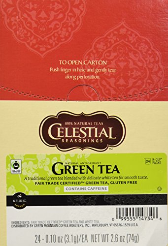 -. Binding : Health and Beauty -. Brand : Celestial Seasonings -. Feature : Celestial Seasonings® traditional green tea blended with white tea for fresh flavor and a smooth finish. / 48 Count Celestial Seasonings Gree Tea / No mess design protects from air, light and moisture / Each K-Cup brews perfect individual servings -. IsAdultProduct : 0 -. Label : Green Mountain Coffee -. Manufacturer : Green Mountain Coffee -. PackageQuantity : 2 -. ProductGroup : Grocery -. ProductTypeName : GROCERY -. Publisher : Green Mountain Coffee -. Studio : Green Mountain Coffee -. Title : Celestial Seasonings Green Tea K-Cup 48 Count Case