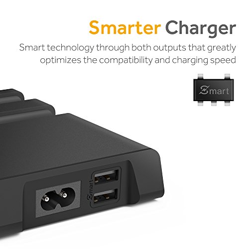 EasyAcc® 24W 5V 4.8A 2 Smart USB Port Charger Stand 2 Rubber Slot Charging Dock for iPhone 6 6Plus iPad Samsung Galaxy S6 Edge S5 - Black