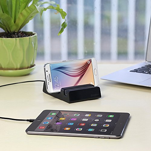 While traditional full-sized USB docks have poor contact and fixed places for putting phones, EasyAcc charging stastion well combines the functionality of charger and stand.