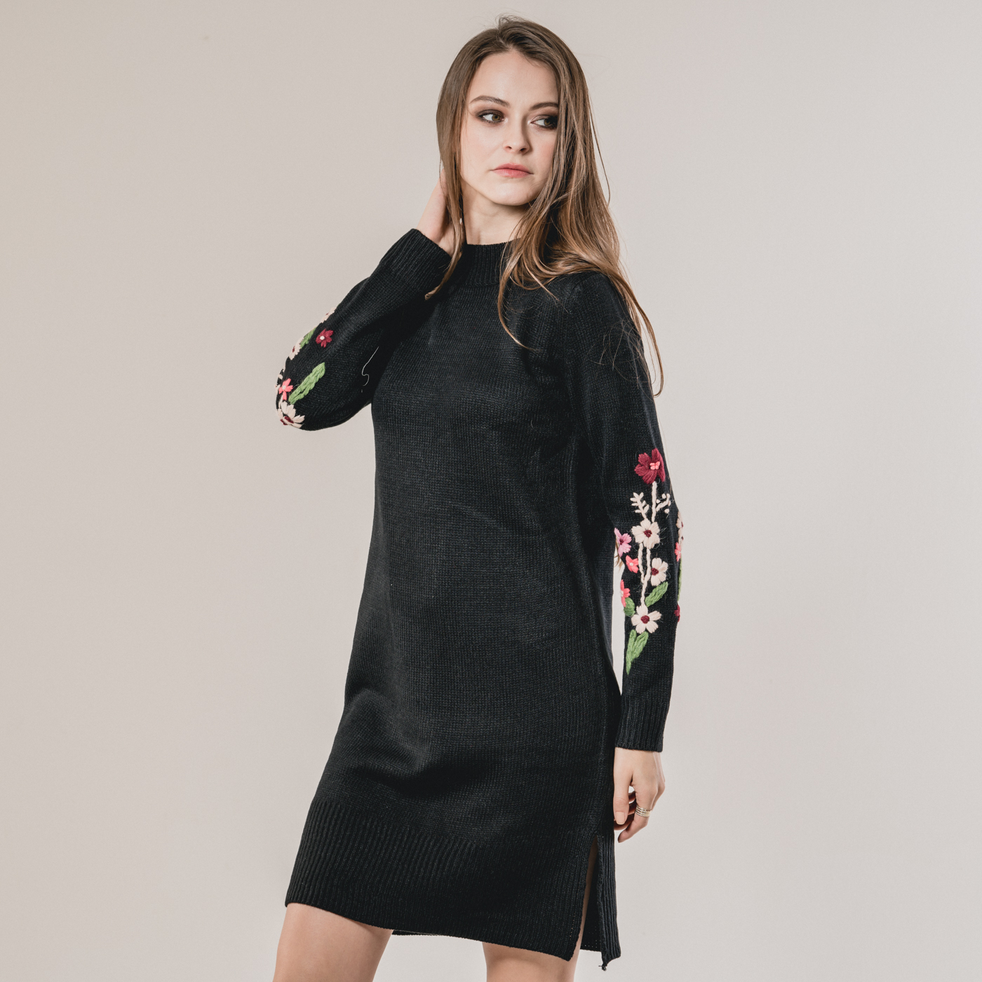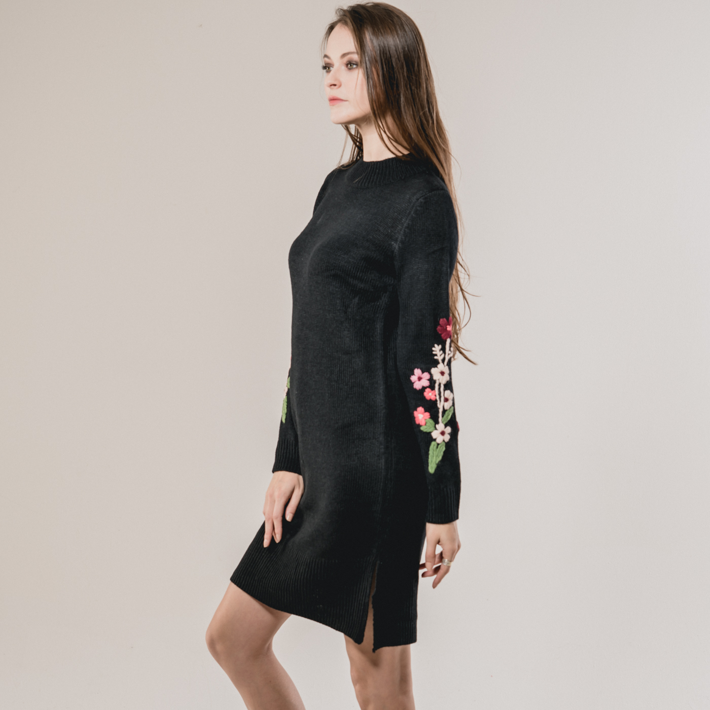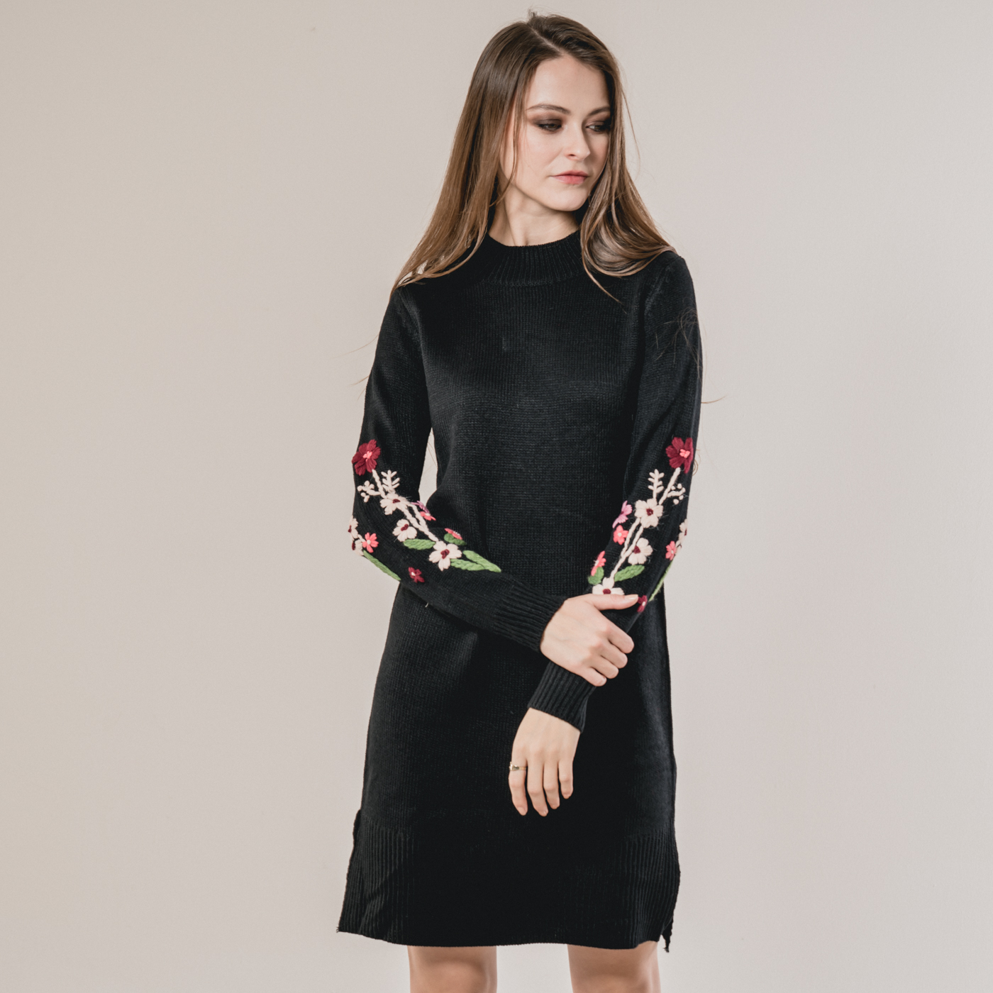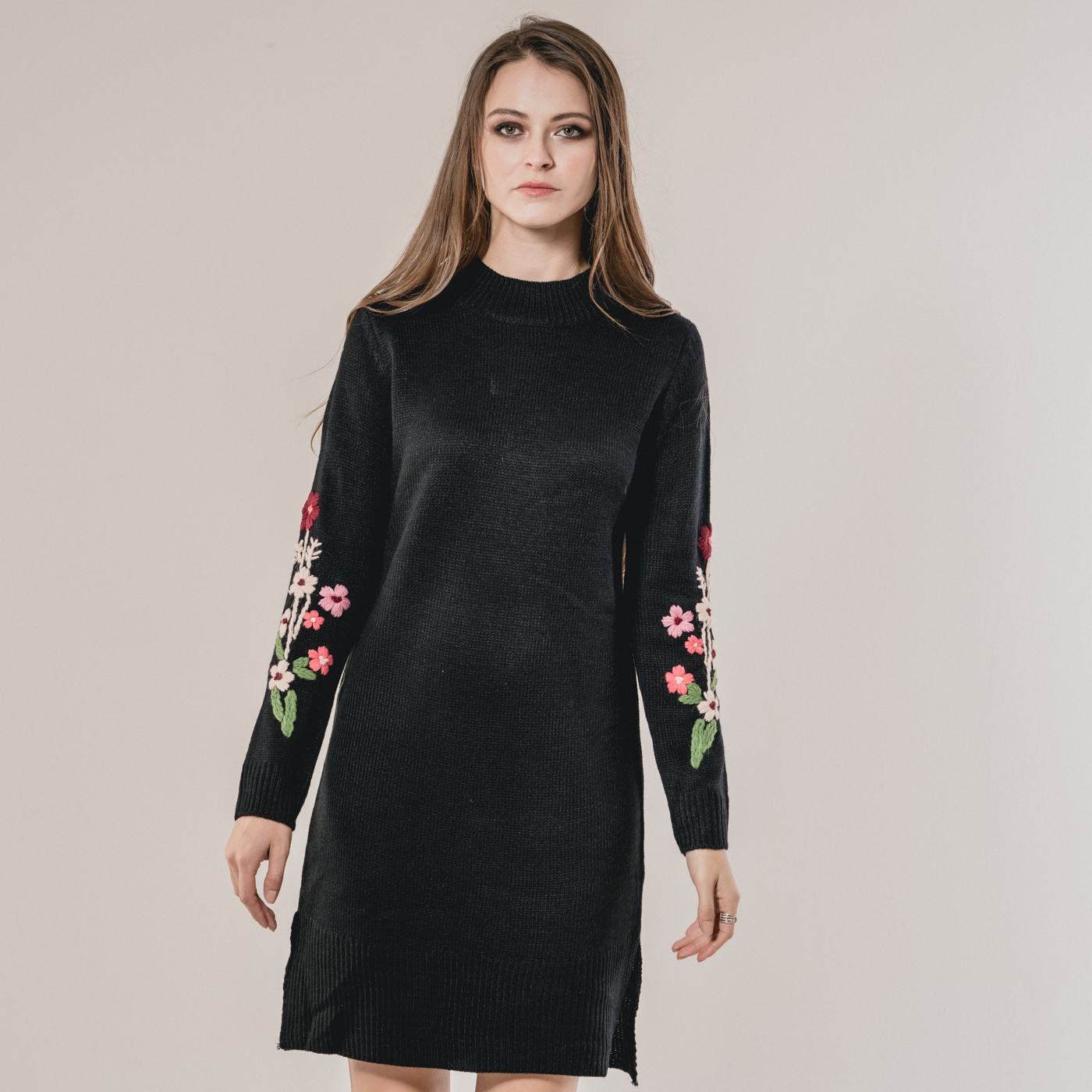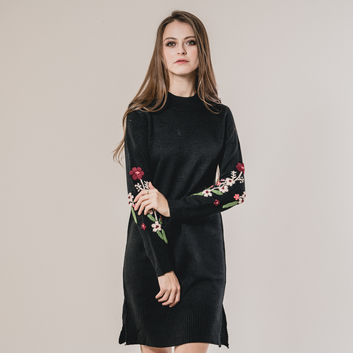 부드러운 니트소재의 플라워 자수가 예쁜 니트 원피스입니다.