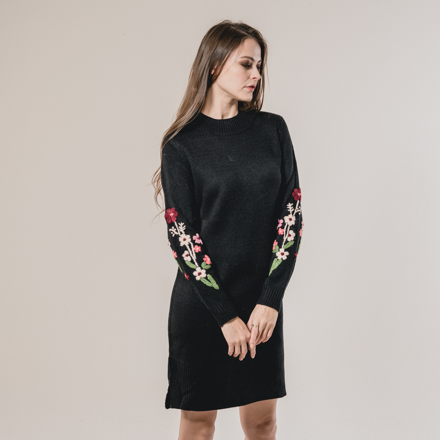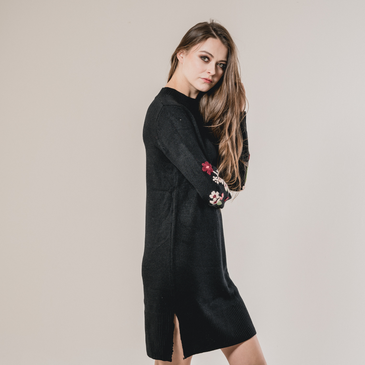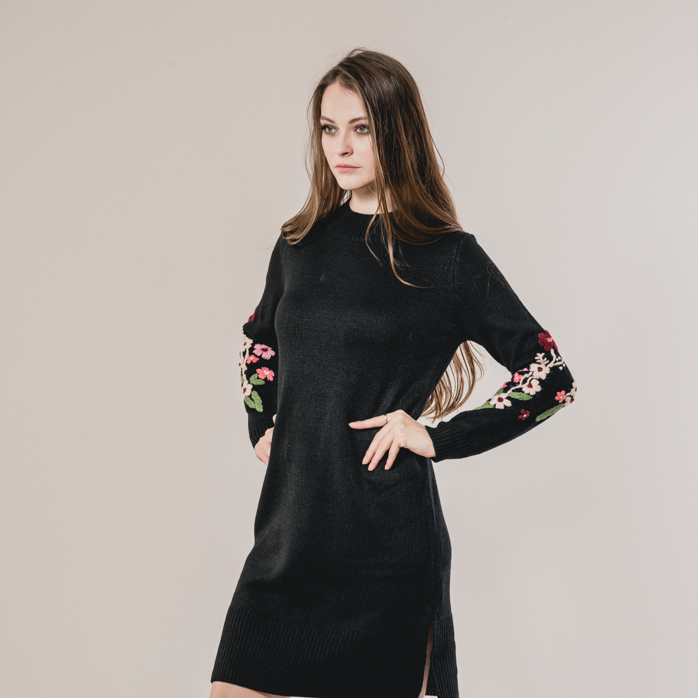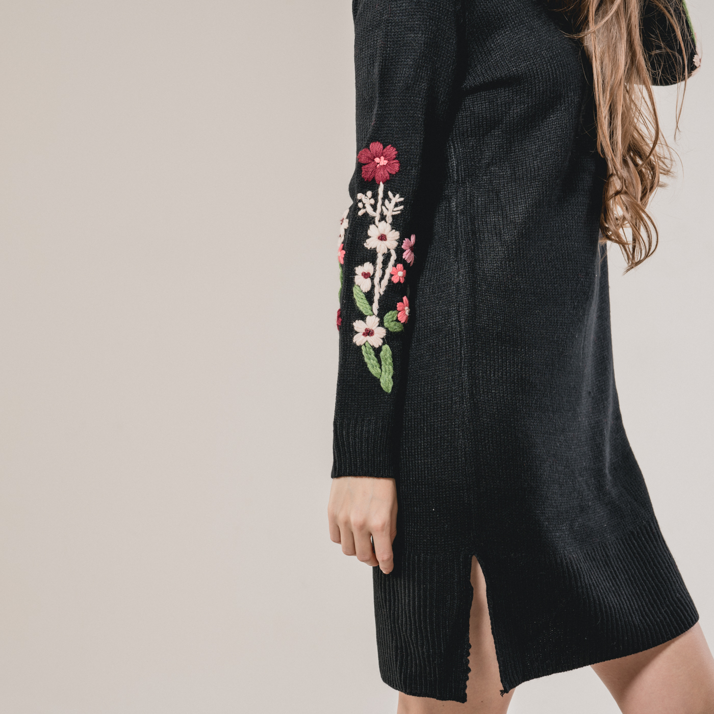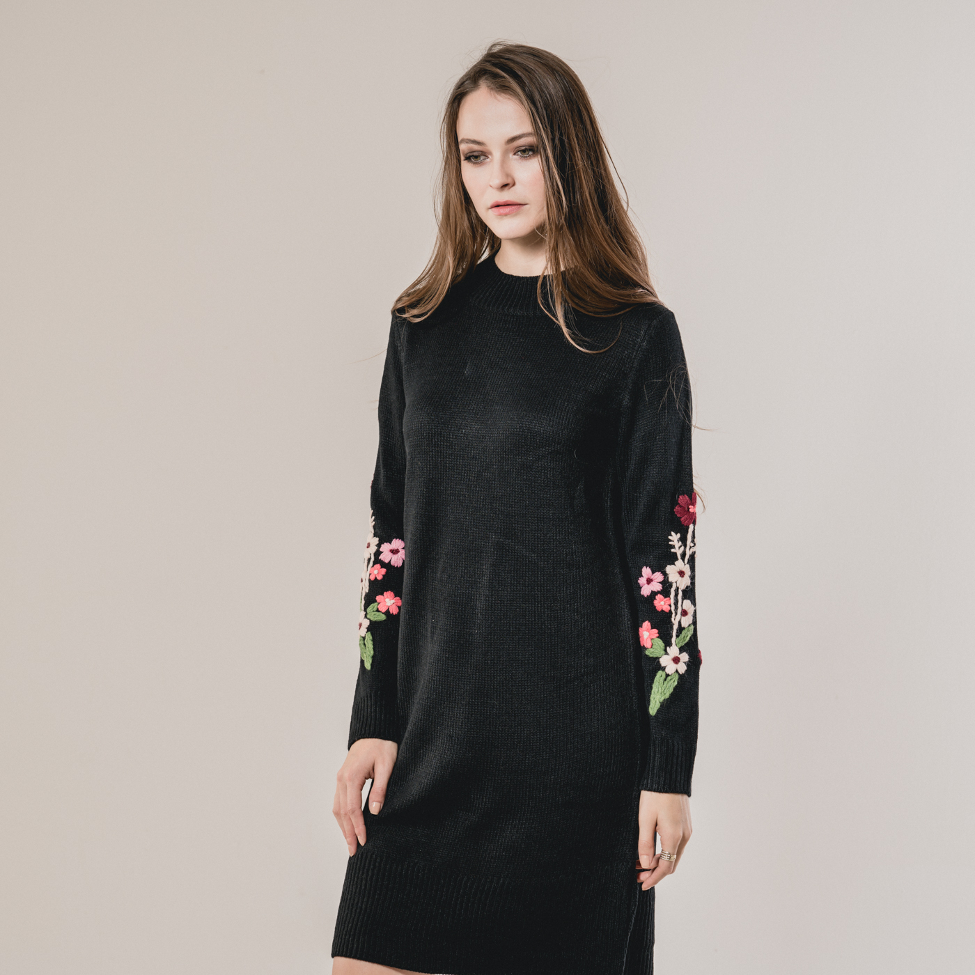 부드러운 니트소재의 플라워 자수가 예쁜 니트 원피스입니다.