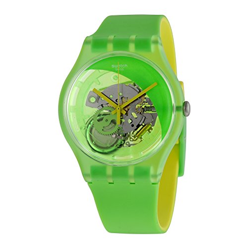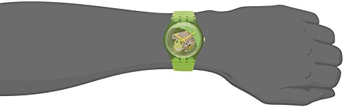 -. Title : Swatch SUOG110 Pomme Tech See Through Dial Green Silicone Band Unisex Watch NEW