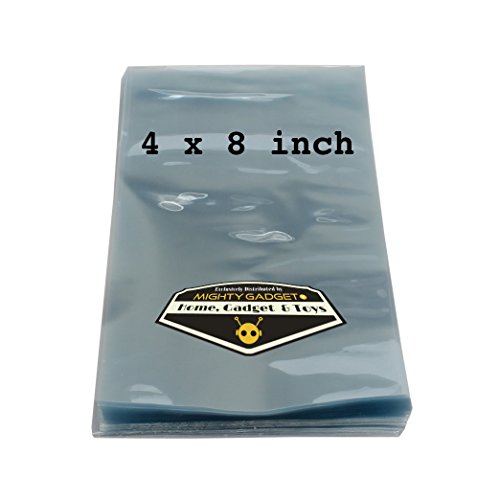 -. Feature : You will receive 100 pcs of Mighty Gadget (R) High Quality Odorless PVC Shrink Wrap Bags (4 x 8 inch, 100 gauge) / Crystal clear packaging in seconds. Our shrink wrap bags are very easy to use for homeowners and professionals. Just put your product inside the bag, use a heat sealer to seal one opening. Then use a heat gun or hair dryer to shrink the bag to fit the products / Heat shrink bags are perfect shrink bags for soap, as well as a wide variety of other products. These Bags are best option to give final touch to your crafted gift basket. It gives more professional finish to your products / Speed up your packaging operations with these bags that have only open end to seal / Mighty Gadget (R) is a registered US trademark and exclusively sold by Mighty Gadget USA Merchant