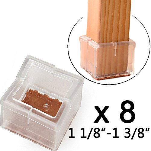 -. Binding : Kitchen -. Brand : Anwenk -. Color : 8 Pack Square -. Feature : Your Floor& Chair Protectors - These chair leg protectors allow your chairs to glide smoothly along the floor to prevent scratches, scrapes or harsh grating. They help protect tile and wood floors & furniture legs. / Will Not Fall Off - These flexible chair leg floor protectors grip the chair legs gently and securely and will NOT fall off.Better choice compare with self adhesive felt pads. Durable& Friction Free - With cushioned felt-padded bottom base to make your chair move easily and quietly across any floor. / Compatibility - These square chair leg floor protectors fit chair legs with length from 1-1/8 inch to 1-3/8 inch (3-3.5cm).(Square). PLZ CHECK SIZE BEFORE PURCHASE. / Material: Soft and durable silicone.100% nontoxic, safe for children & pets. Color: Clear& transparent-virtually invisible. Shape: square/cube. / Net weight: 0.6oz/pc. Package includes 8 pcs of chair leg protector caps(square). Easy Return.100% satisfaction guarantee. -. IsAutographed : 0 -. Label : Anwenk -. Manufacturer : Anwenk -. Model : Chair Leg Floor Protectors -. MPN : Chair-Leg-Pads-S-8 -. PartNumber : Chair-Leg-Pads-S-8 -. ProductGroup : Home -. ProductTypeName : HOME -. Publisher : Anwenk -. Size : 1 1/8"-1 3/8" -. Studio : Anwenk -. Title : Chair Leg Floor Protectors 8 Pack Silicone Chair Leg Protectors Leg Caps Furniture Protectors Table Chair Feet Protectors| Best Chair Leg Caps Tips, Square1 1/8"-1 3/8",Clear (8 Pack)