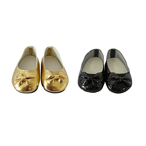 Included: 1 Pair of Golden Doll Shoes, 1 Pair of Black Doll Shoes. 0