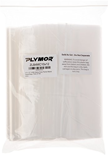 Plymor 10" x 12", 4 Mil (Pack of 100) Heavy Duty Plastic Reclosable Zipper Bags