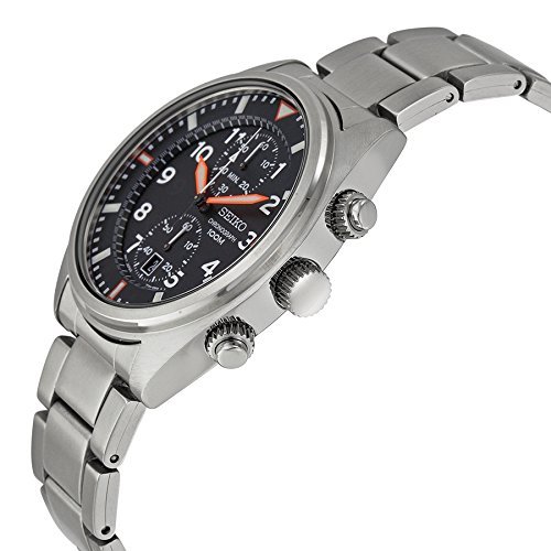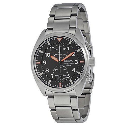 세이코import 세이코 Mens Chronograph Silver-Tone Steel Black Dial 남성 맨즈 손목시계 【병행수입품】