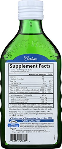 Carlson Nutra-Support 50+, Award Winning Lemon Flavored Liquid, 1,100 mg Omega-3s + Vitamins A & D, Support for adults 50+, 250 ml