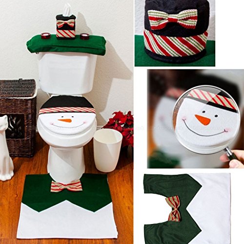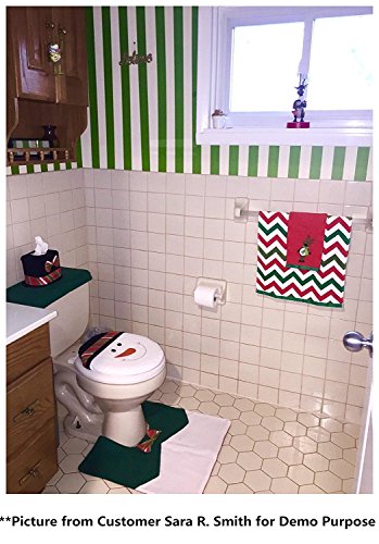 Ohuhu Christmas Santa Toilet Seat Cover, Toilet Paper Box Cover and Mat Set, Christmas Decoration Set, Christmas Bathroom Set, Green