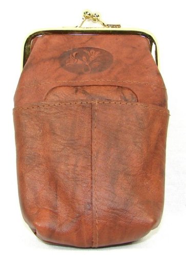 Feature : Genuine Leather / Kiss-lock or twist clasp closure / Large lighter pocket at front / Back has a zippered pocket for bills or coins / 5" x 3.5" x 1" - Will not fit 100s!