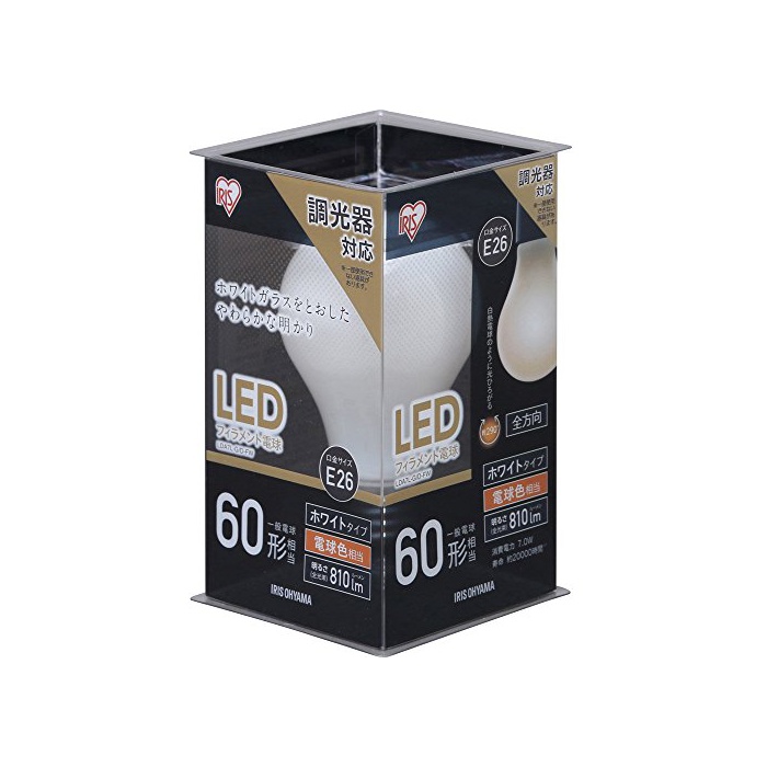 원본상품명: アイリスオヤマ LED電球 フィラメント 口金直26mm 60W形相 電球色 全配光タイプ 調光器 乳白 LDA7L-G/D-FW