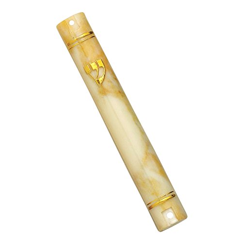 - Beautiful marbleized creme designed Mezuzah case with Gold Shin letter design
