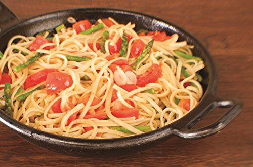 -. Feature : 10-inch skillet; made of cast iron for superior heat retention / Pre-seasoned and ready to use / Convenient assist handle / Should be cleaned with a stiff brush and hot water; oven-safe / 2 inches deep