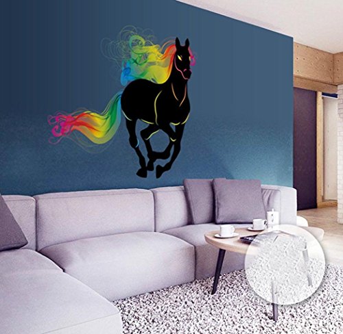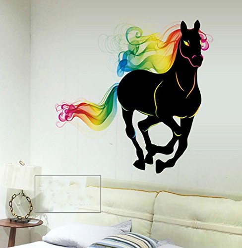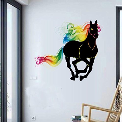 BIBITIME Psychedelic horsehair tail Running Black Horse Wall Decal Fashionable Bedroom Living Room Porch decorative Wall Stickers for Nursery Kids...