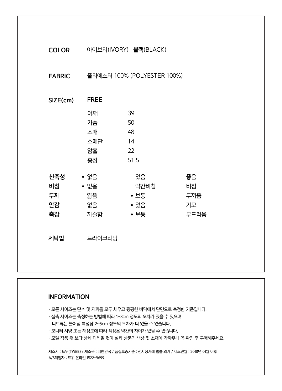 안감처리가 되어있어 까슬거림없이 착용하실 수 있어요^^