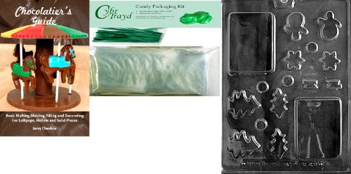 Cybrtrayd Christmas Scene Chocolate Mold with Chocolatier's Bundle of 25 Cello Bags, 25 Green Twist Ties and Chocolatier's Guide