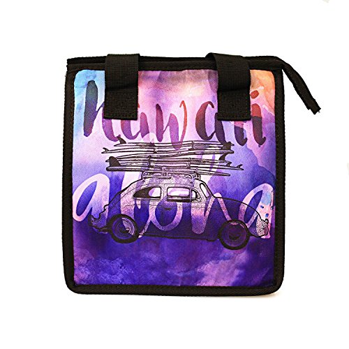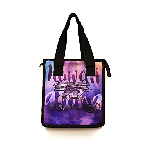 Hawaiian Print Thermal Insulated Zipper Lunch Bag Vintage Cars Surfboards Aloha Hawaii Small