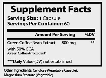 800mg Pure Green Coffee Bean Extract with 50% GCA - | 60 Capsules | Natural Weight Loss and Appetite Suppressant | Antioxidants Support for Healthy...