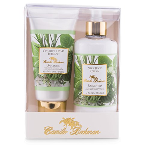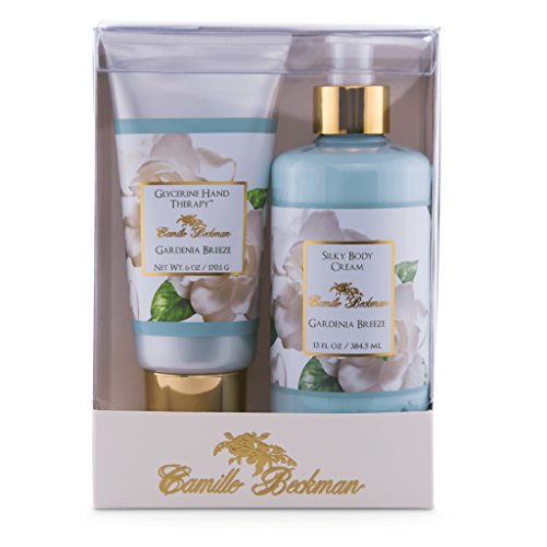 Camille Beckman Hand and Body Duet Gift SetGlycerine Hand Therapy - Unique restorative cream moisturizes and nourishes through a blend of glycerin, vitamin E, aloe vera, almond oil and botanical extracts. Made with nature's best moisturizer, kosher vegetable glycerin, and ample amounts of sweet almond oil to soothe and condition; then sealed with our signature herbal complex to brighten and restore the skin to its original soft touch.