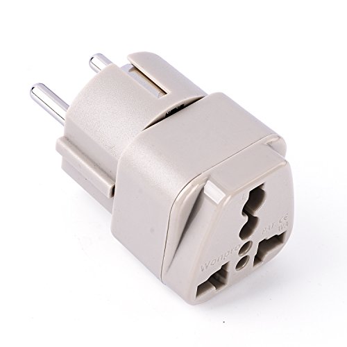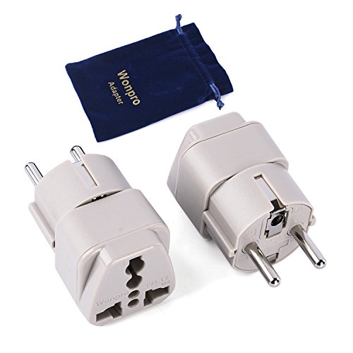 Wonpro Grounded Schuko Travel Plug Adapter Type E/F for Spain, Russia, Germany, Poland, Belgium -CE Certified -2 Pack