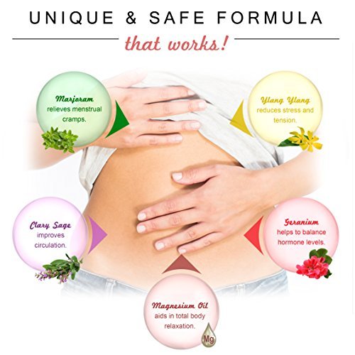 SOOTHING STRENGTH OF USDA ORGANIC ESSENTIAL OILS: This special, natural PMS Relief spray also contains essential oils for pain and PMS. Sweet Marjoram assists with pain relief, Clary Sage supports hormones and neurotransmitters for a lifted mood. Ylang Ylang assists with stress, tension and cramping, while Geranium supports adrenal hormones, an important consideration for menstrual cramp relief and PMS hormone support. And it smells heavenly, another mood booster!