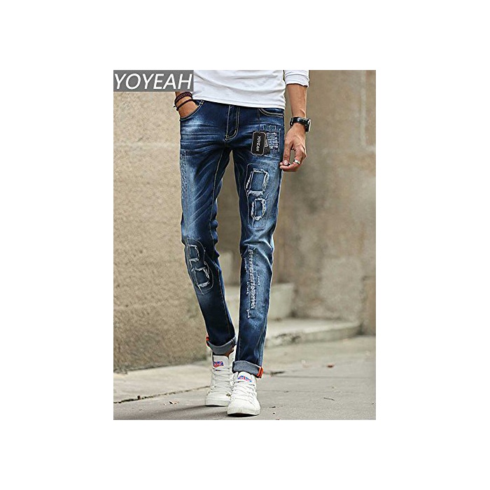 (# 것이나)YoYeah 맨즈 스키니 진즈 팬츠 청바지 가는 몸 캐주얼 스트리트 계 blue 28