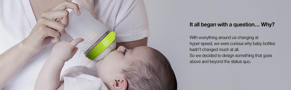 The world continues to change right before our eyes. But why is it that baby bottles are the same old unflattering tools? After all, isn't the baby bottle one of the first objects that your baby experiences through all five senses? Why should mothers have to worry about toxic plastic & colic-inducing design for something so basic & important? We found no good reason & decided to challenge the status quo. In our voyage, we've learned an important lesson. Inspiring products are born only when we think with a mother's heart & experience through a baby's eyes. We proudly introduce Comotomo Natural-Feel Baby BottleTM. Comotomo Baby Bottles feature innovative and sensible design to most closely mimic natural breastfeeding. Our naturally shaped, soft, silicone nipples are ideal for babies who have trouble transitioning from nursing to bottle-feeding. Your little one will love to hold onto the skin-like, soft and squeezable body that is like no other bottle in the world. And you will fall in love with our wide-neck design for brushless, stress-free, cleaning bliss! Our bottles are equipped with truly innovative vents that are smartly designed to prevent colic, while completely eliminating annoying leaks. They are quite possibly the most thoughtful bottles ever made. *8oz bottles come with medium flow nipples (2 holes) designed for 3 months to 6 months. Easy Feedings, Happy Baby: - Naturally shaped, squeezable, soft, skin-like silicone – Ideal for breast-fed babies - Innovative & non-leaking anti-colic vents - Unique interlocking feature and no-drip design Easy to Clean: - Wide-neck design for easy, brushless cleaning - Safe in: microwave, boiling water, dishwashers and sterilizers Safe Feeding: - 100% safe materials: BPA, PVC, Phthalate freeFrom the Manufacturer
