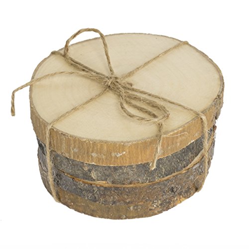 Natural Wood Coaster Set 4 pcs with Tree Bark Wooden Coasters Each Measures About 3.5 inches in Diameter