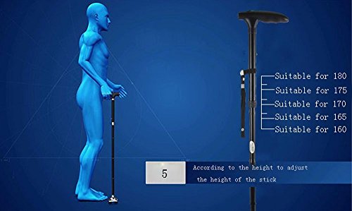★ FOLDABLE WALKING CANE WITH LIGHT (Batteries Included) Versatile easily folded for convenient storage and extended to locking position. Height adjustments from 34 inch to 39 inches. Easily folds into four sections and can be conveniently stored for travel and convenience. The cane folds into four sections, meaning you can store it in your bag when you're not using it or when you travel. Adjustable 6 white bright LED lights so you can choose where is should shine