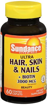 -. Title : Sundance Ultra Hair, Skin & Nails + Biotin 3000 mcg per Serving - 60 Coated Caplets, Pack of 2