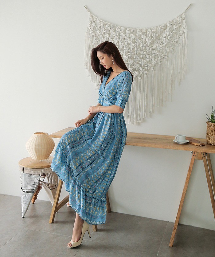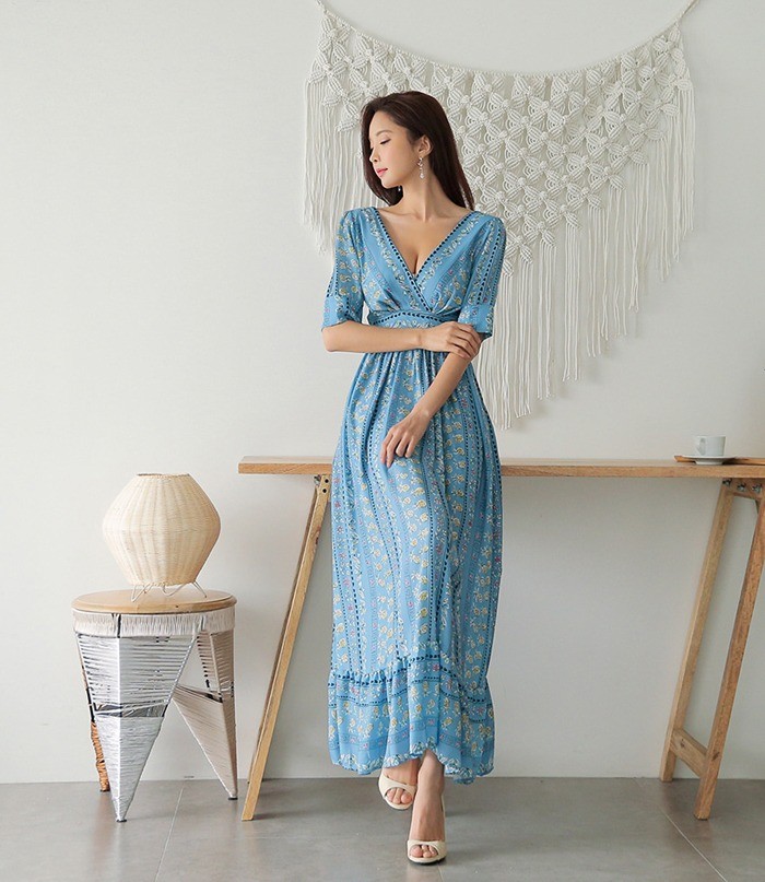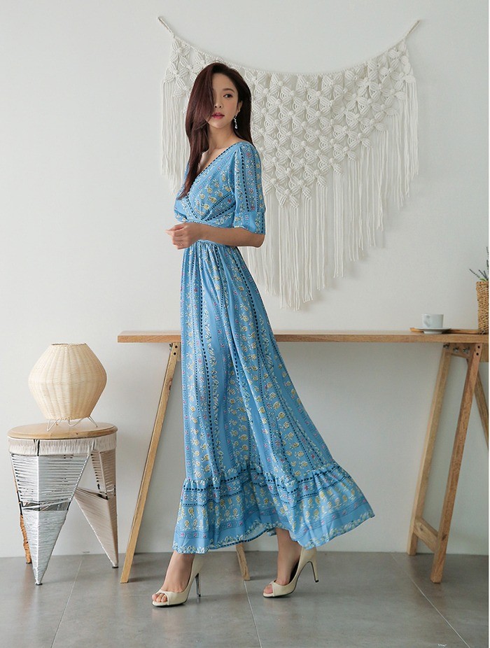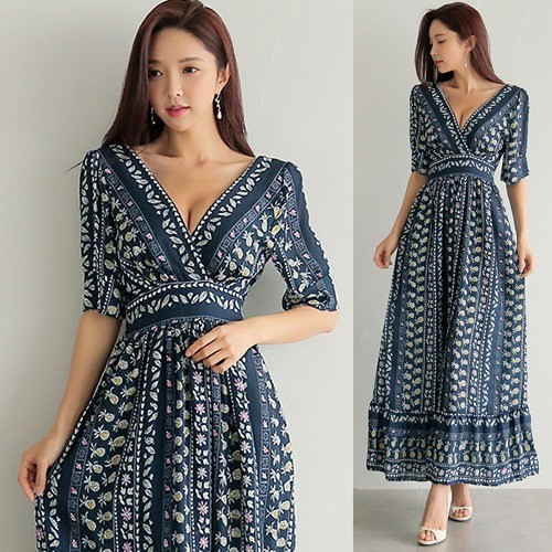 商品名:マキシワンピース ロング丈 ボタニカル柄