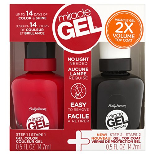 Over 61 shades that wow! And it's only from Sally Hansen. Leading the revolution in gel technology. For Best Results: Make sure nails are clean and dry. Use nail polish remover to wipe away any residue on the nail. Step 1: Apply 2 coats of Miracle Gel Color. Allow color to dry for 5 minutes. Step 2: Apply 1 coat of Miracle Gel Top Coat. Let natural light do the rest!Feature