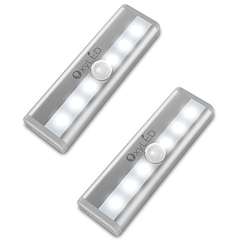 OxyLED Motion Sensor Cabinet Lights, Mini Closet Light, Stick-on Wireless 6 LED Night Light Wardrobe Cupboard Drawer Lights, 2-pack, Battery Operated, T-02 Mini